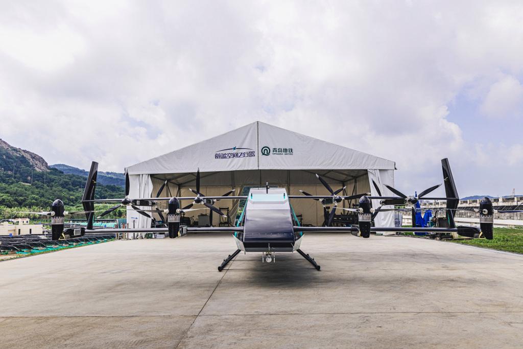 7月25日上午,随着一阵轰鸣,一架飞行器从青岛地铁1号线凤凰岛站停机坪起飞,首次实现了2吨级纯电动全倾转eVTOL在起飞场地尺寸仅有15米×20米(不足飞机外廓尺寸1.5倍)的城市内狭窄场地垂直起降。