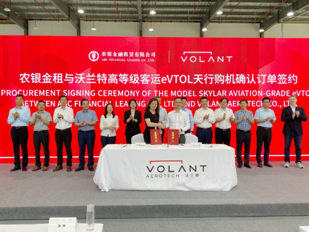 8月26日上午,沃兰特航空与农银金融租赁有限公司(简称农银金租)在位于上海闵行的沃兰特航空试验中心签署了针对沃兰特天行(VE25-100)的购机确认订单。这也是中国载人eVTOL(电动垂直起降航空器)行业迄今最大一笔确认订单。